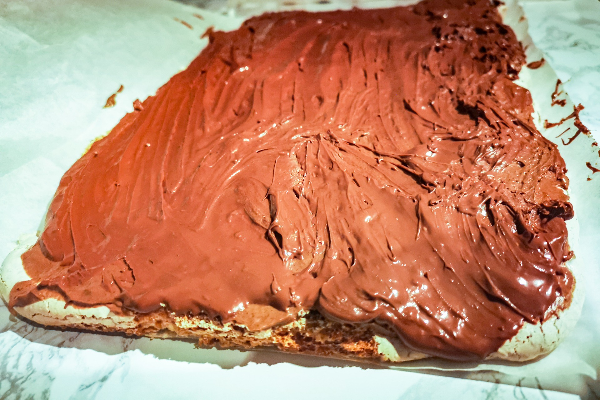 Hell sjokoladen over fyllet, spre utover med en spatel eller slikkepott.